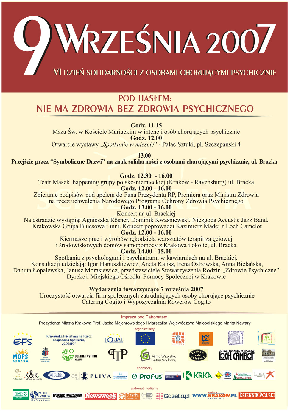 Zapraszamy na krakowskie obchody w niedzielę 9 wrzesnia 2007 do Pałacu Sztuki a następnie na ul. Bracką w Krakowie